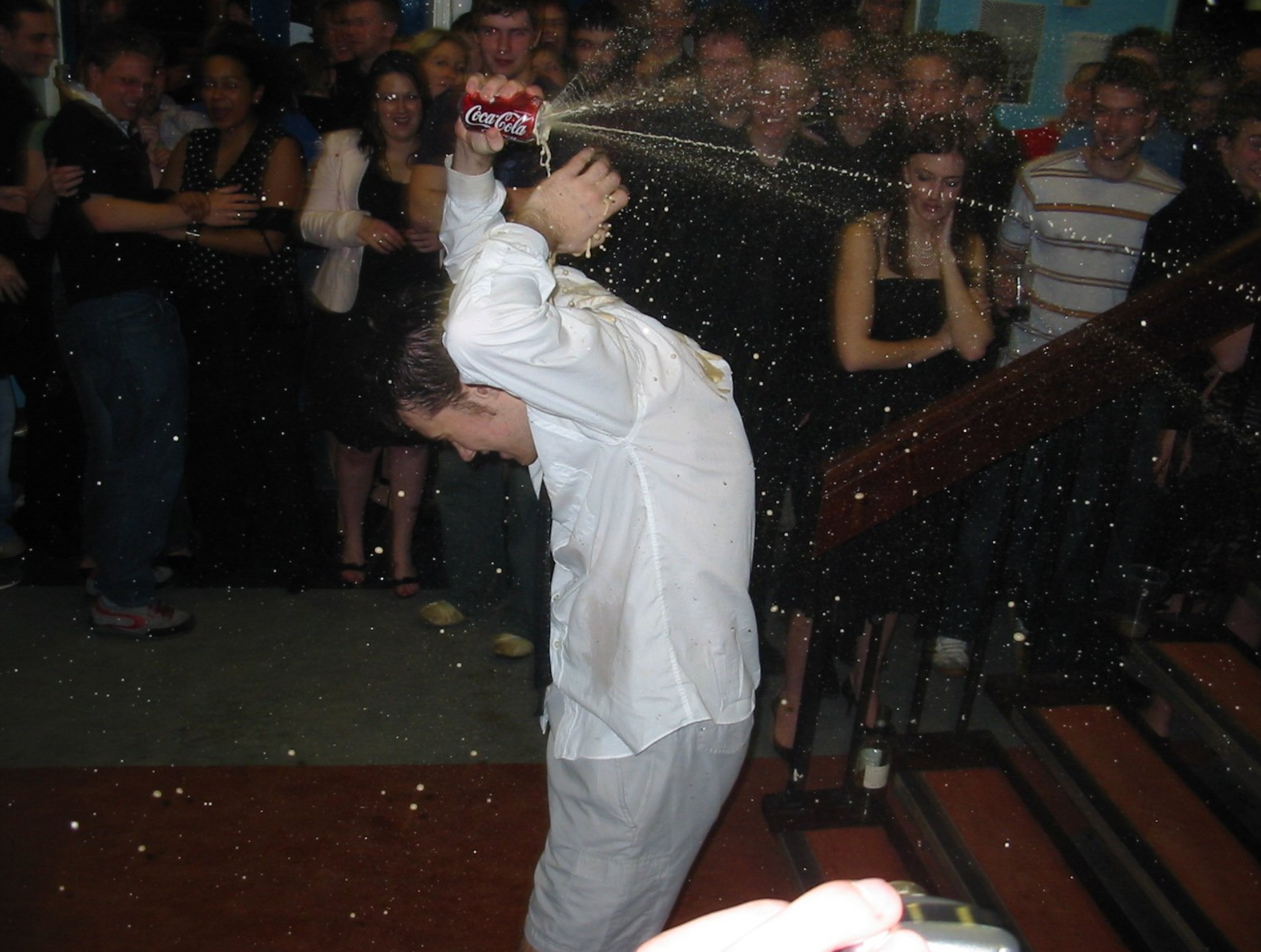 For the audience, the Kazu is a uniquely hilarious spectacle, but for the participants it can mean so much more. After a couple of weeks of sticking posters in toilets, knocking on doors and singing weakly-comedic songs to a partisan audience, that high pressure jet of Coke is the climax of a draining election process. In June 2005 I was lucky enough to perform a Kazu and I can honestly say I don’t think I’ll ever feel more proud to be soaked in Coca Cola.